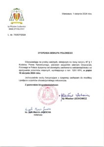 DYSPENSA BISKUPA POLOWEGO 10 sierpnia 2024 przez swfran Poprzedni wpisXIX Niedziela okresu zwykłegoNastępny wpis Matki Bożej Zielnej